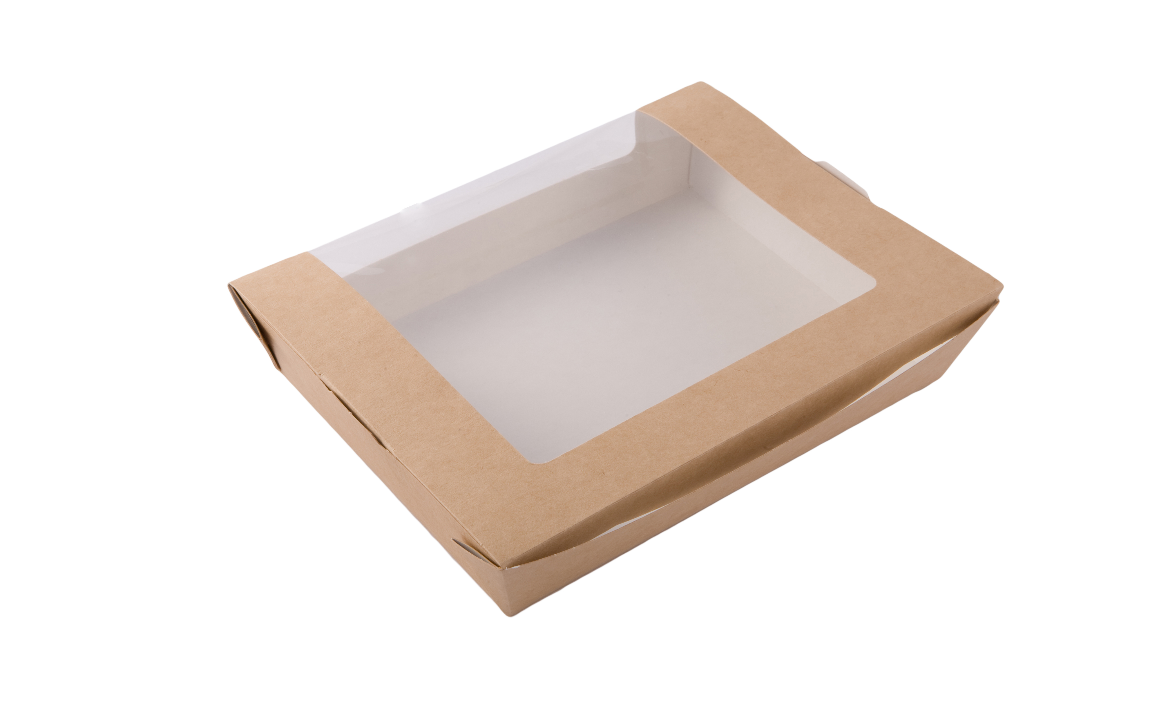 Scatola in cartone con finestra da fonti gestite, formato grande.